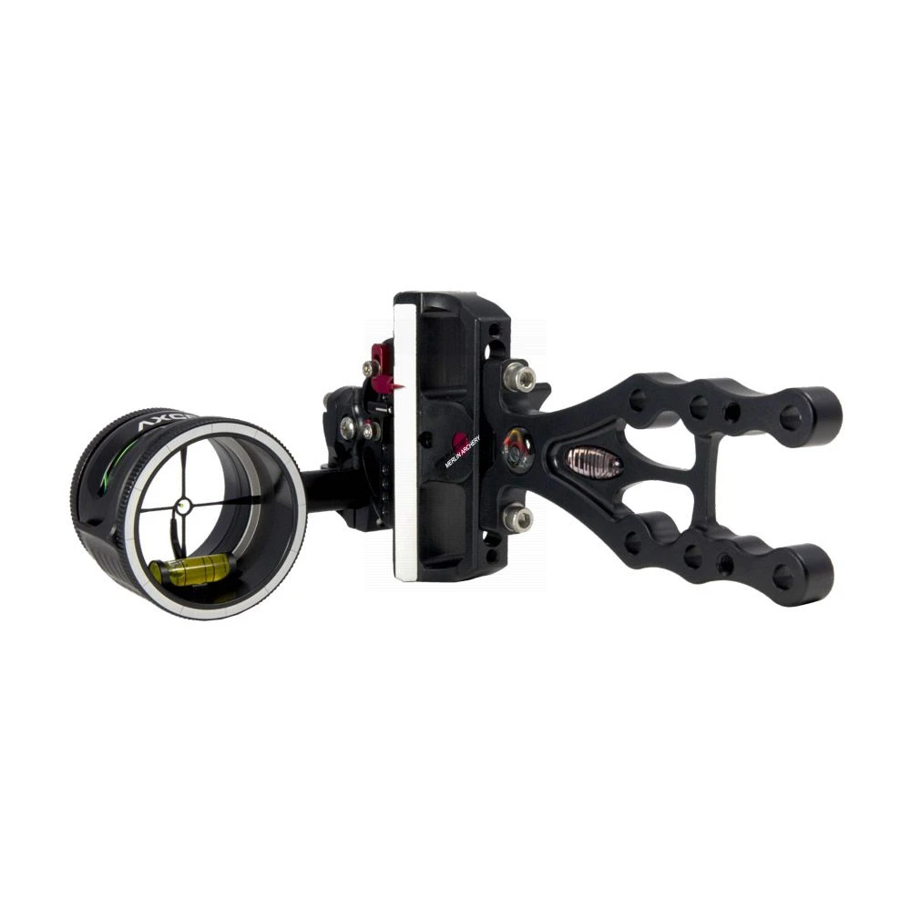 The Accutouch sight brings new technology to the sight market as a whole with a patent pending, adjustable red elevation tension lever. this tension lever provides the archer with their own personal choice of how easily the sight slides along the elevation bar. The Accutouch sights feature all axis leveling capabilities from the first axis adjustment where NO shims are needed to the ever popular, separate 2nd and 3rd axis leveling on the head of the scope attachment! Another feature of the Accutouch is the windage lock button that, when engaged, does not allow the micro-adjustable windage knob to turn. Simply disengage the windage lock to make a windage adjustment.