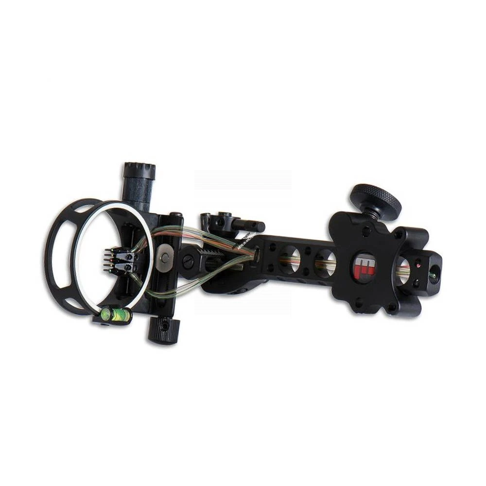 Aluminium lightweight 5-pin .019 fibre optic hunting sight with micro toolless windage/height adjustments, sight level and light.