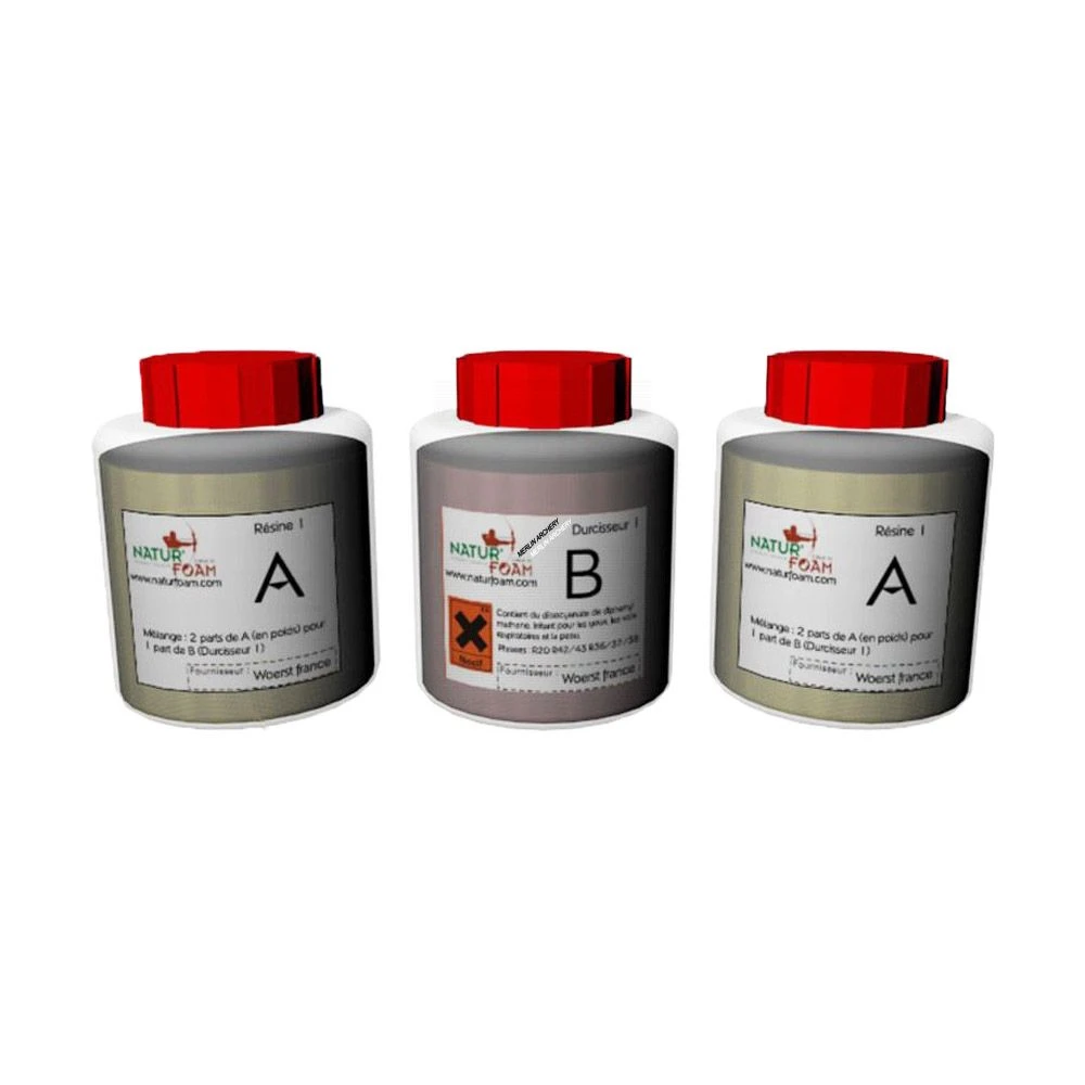 - Product A colored medium brown (Polyol or Resin): 2 cans