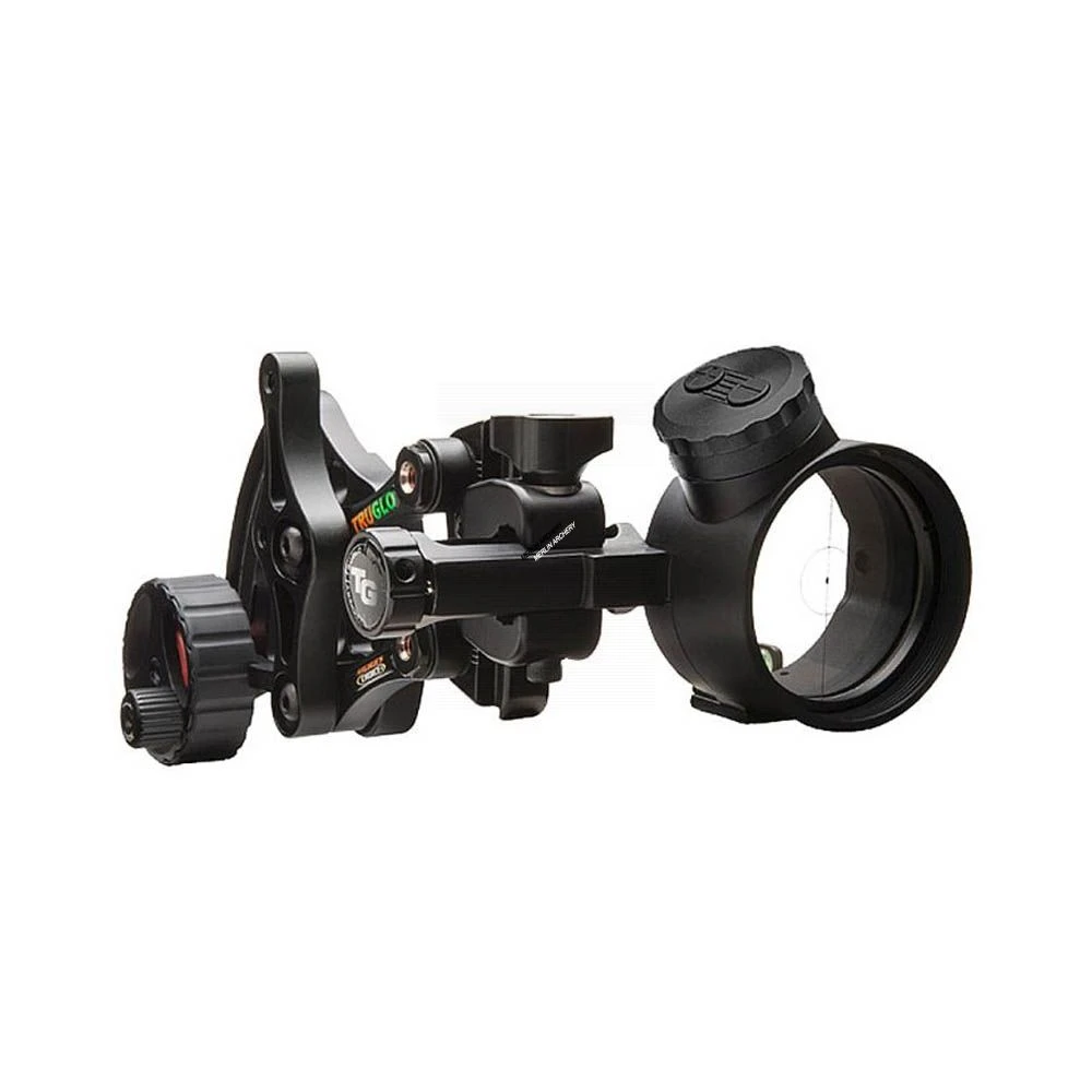 PWR DOT™ technology uses an LED illumination system inside the lens instead of a conventional pin ZERO–IN™ adjustment dial with over 80 pre–marked yardage tapes for simple setup.