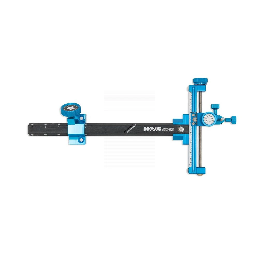 Several months of development, including shooting machine tests, resulted in the creation of this sight. It features a great ease of use, micrometer adjustments and an enhanced endurance. The double carbon/foam layer extender minimises both weight and torque while shooting. The double guidance of the head (threaded rod/bar) enables a perfectly fluid movement.